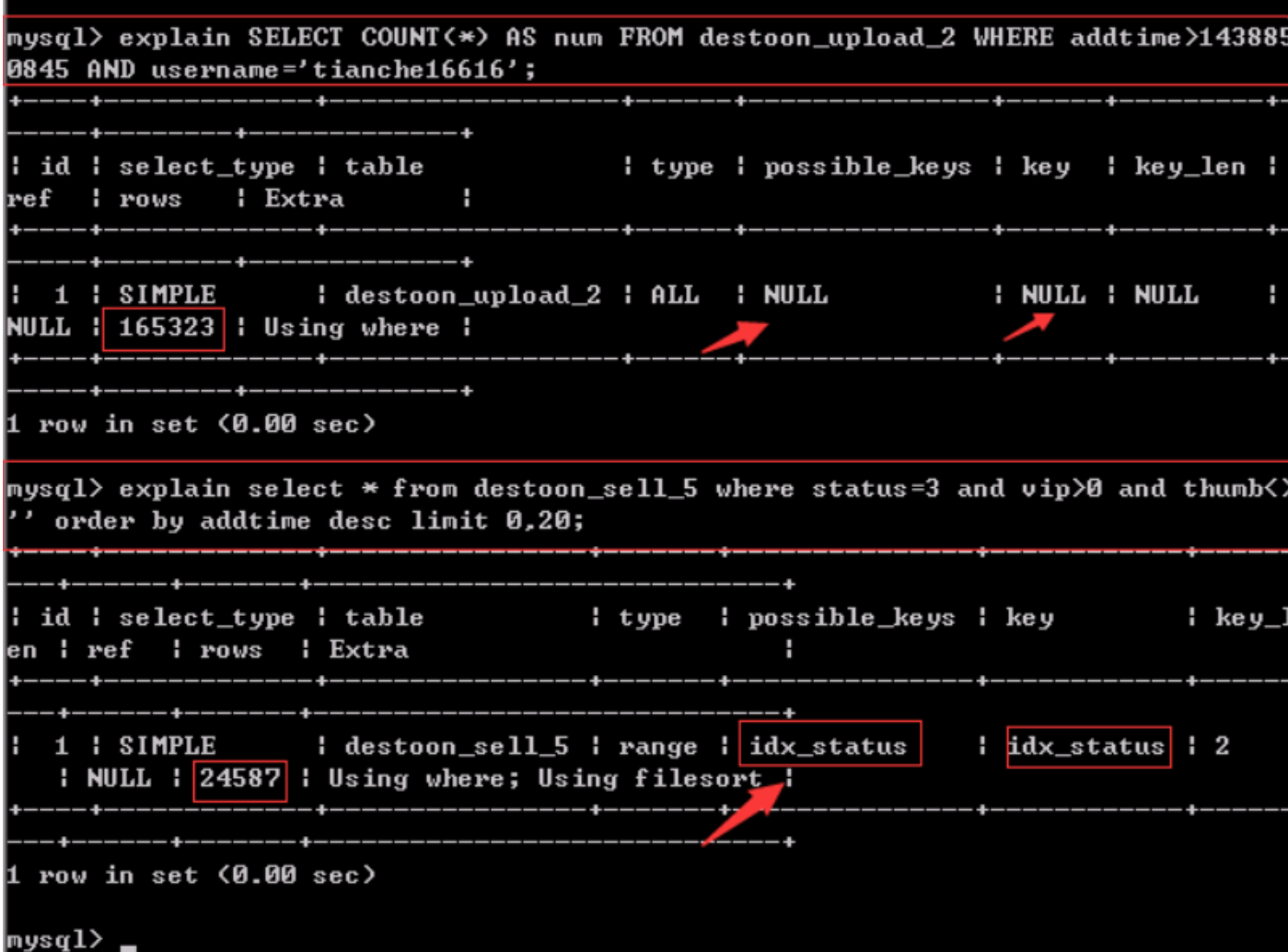 数据库执行查询比较慢时,可以用此方法列出执行的sql语句,然后用explain命令来查看语句执行效率,主要看数据量和执行效率,根据实际情况确定cname是否建立索引。