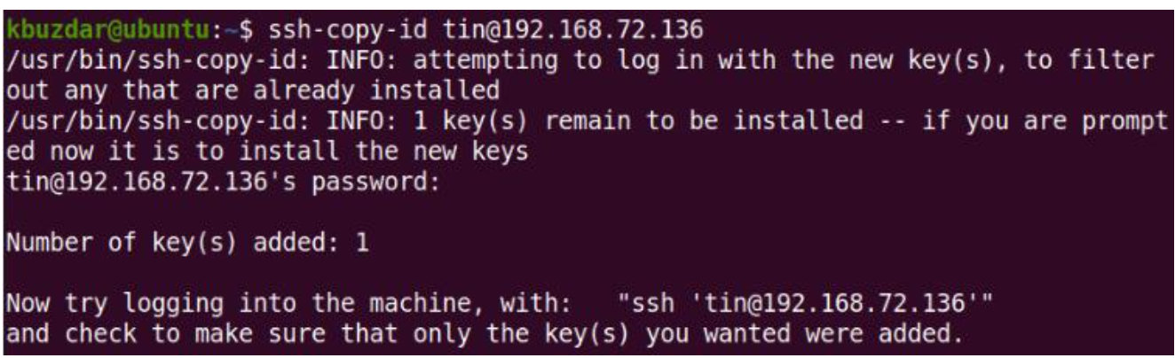 $ ssh-copy-id tin @ 192.168.72.136